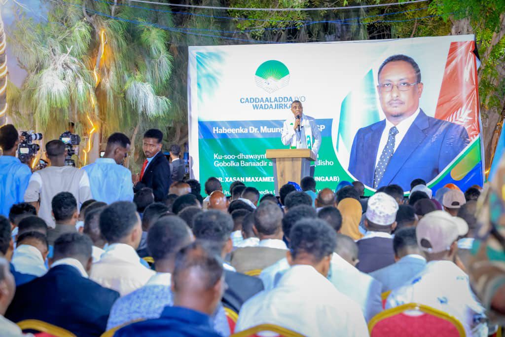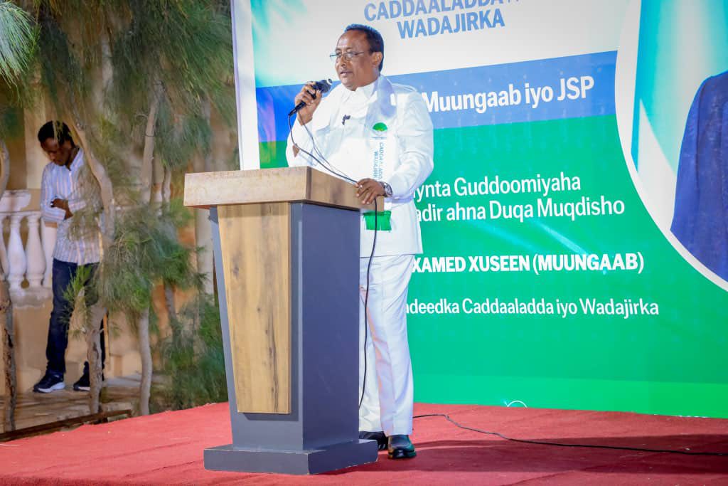 Mogadishu (LM)- In a significant political shift, the Mayor of Mogadishu and Governor of Banadir Regional Administration, Mr. Hassan Mohamed Hussein, also known as ‘Mungab,’ has officially joined the Justice and Solidarity Party (JSP). The announcement was made during a welcoming event attended by national leaders, party members, and esteemed guests, highlighting the growing influence of JSP in the capital.