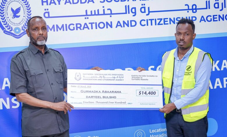 Mohamed Ali Siyad, known as “Champion”, chairman of Daryeel Bulsho, said the Immigration and Citizenship Agency was the first government institution to respond to the organization’s appeal for drought assistance. He thanked the agency’s staff for their solidarity and support.