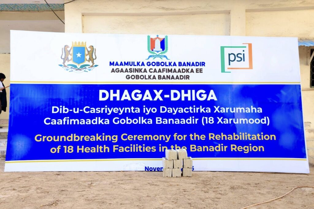 Mogadishu, November 15, 2025 — The Governor of Banaadir Region and Mayor of Mogadishu, Dr. Xasan Maxamed Xuseen (Muungaab), officially laid the foundation today for the rehabilitation and construction of 18 modern health facilities designed to enhance healthcare services for the residents of Mogadishu.